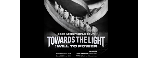 Coté actu, le groupe a sorti il y a quelques mois GOLDEN HOUR : Part 1 accompagné du titre WORK, se classant en seconde position dans le Billbord 200. Un record de plus pour ATEEZ puisque les Coréens deviennent ainsi le premier groupe de K-pop a entrer dans le Top10 Albums au Royaume-Uni. Après avoir triomphé lors de sa tournée nord-américaine, ATEEZ annonce 12 dates européennes en 2025 pour son ‘TOWARDS THE LIGHT : WILL TO POWER’ et qui débutera samedi 18 janvier à Lyon – Décines à la LDLC Arena et qui passera également à Paris La Défense Arena samedi 22 février.